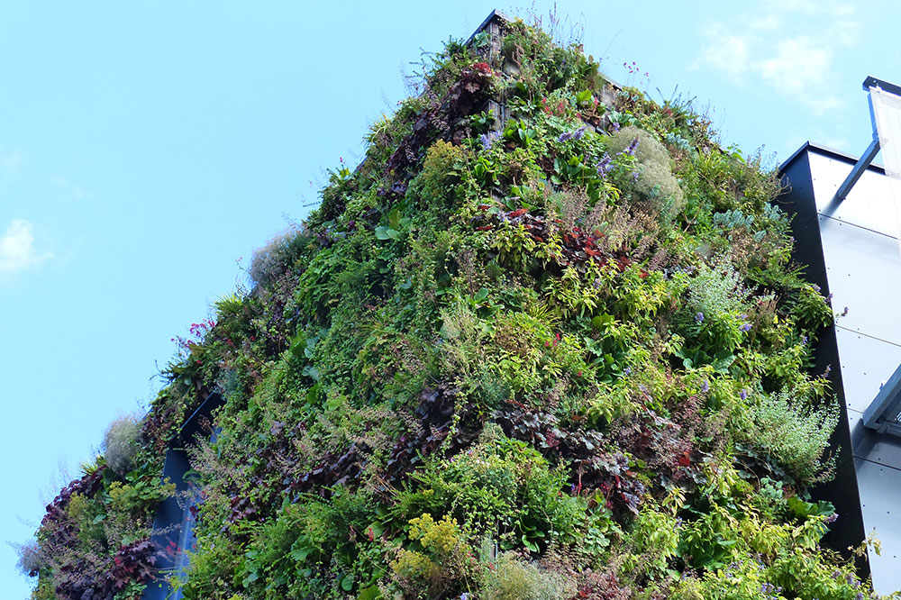 Le choix de la palette végétale fut une étape délicate du procédé : quelques 3200 vivaces et de graminées, regroupant 30 espèces différentes, évoluent sur cette façade végétalisée, créant des rythmes de couleurs et de formes qui illuminent le bâtiment au fil des saisons.
