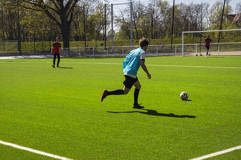 Nos équipes spécialisées en terrain de sports ont achevé en quelques semaines la création dans son intégralité, d’un terrain de football à 8 joueurs, en revêtement synthétique de dernière génération, avec un remplissage en matériaux naturels : du sable de lestage et une couche de liège.